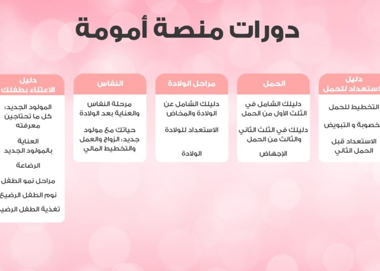 يمكن التسجيل في منصة “أمومة” اليوم من خلال https://omooma.com/ والتسجيل المجاني على الدورات المختلفة لدى المنصة.