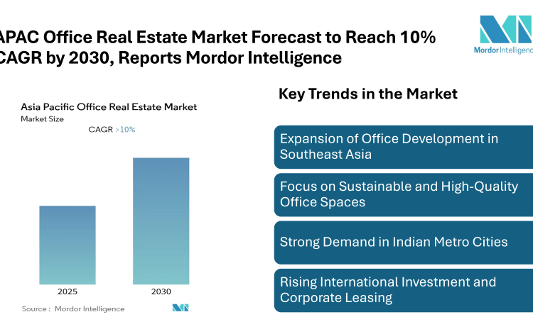 According to Mordor Intelligence, the Asia Pacific Office Real Estate Market size is expected to register a CAGR of 10% by 2030. Landmark developments like Singapore’s Punggol Digital District and high-profile acquisitions such as Blackstone’s purchase of the Tokyo Garden Terrace Kioicho highlight the increasing focus on premium office properties across the region.
