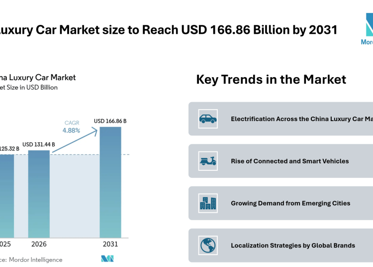 According to Mordor Intelligence, the China luxury car market size is expected to grow from USD 125.32 billion in 2025 to USD 131.44 billion in 2026, and further reach USD 166.86 billion by 2031, registering a CAGR of 4.88% during the forecast period.