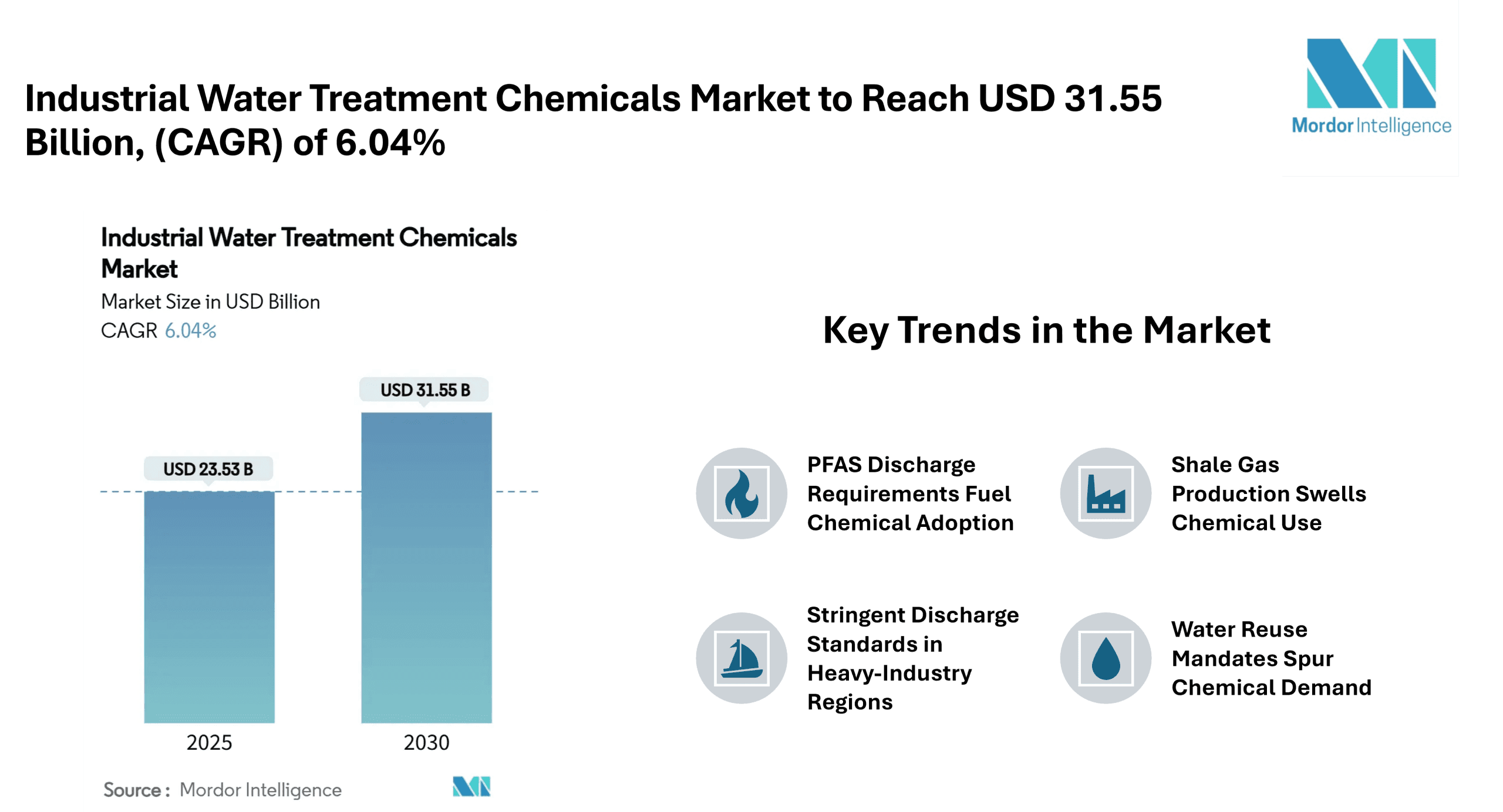 Industrial Water Treatment Chemicals Market to Reach USD 31.55 Billion by 2030 on Growing PFAS Regulation and Water Reuse Demand