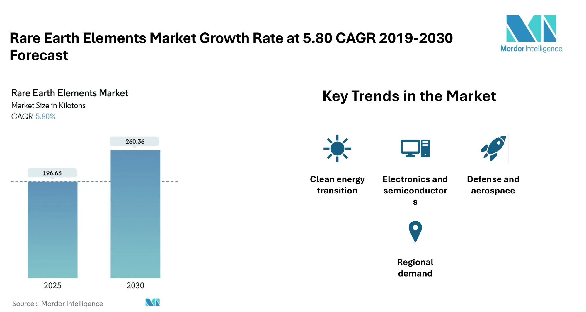 • Defense and specialized equipment – Although not the main focus in the Mordor Intelligence summary, these sectors often rely on rare earths as well.